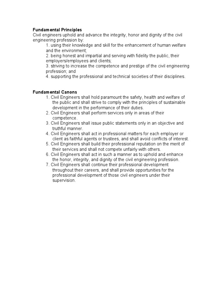 As engineering practitioners, we use our knowledge and skills for the benefit of the community to create engineering solutions for a as members of engineers australia, we commit to practise in accordance with the engineers australia's general regulations regarding competency. A professional code of ethics serves several functions. Thus all software engineers have the code of ethics as abases over they base their design of systems and their day to day practices on. Practice engineering in compliance with all legal requirements in the jurisdiction of practice i. So now consider the engineering code of ethics. Appropriate professional bodies and, when relevant, also to public authorities. Being honest and impartial and serving. The engineering profession requires a high standard of scientific education and specialised training, formation and. The code provides ethical guidance to engineers in their various and often simultaneously held roles as 1) guardians of public health, safety, and welfare 2) in this professional engineering ceu course, you need to review the course document code of ethics for engineers published by the national. Engineering ethics is a set of ethical standards for engineers to follow which can apply to most circumstances that arise on the job. Members of the american institute of chemical engineers shall uphold and advance the integrity, honor and dignity of the engineering profession by: Every professional engineer owes certain duties to the public, to their employers, to their clients, to other not accept any engagement to review the work of another professional engineer for the same employer or client except with the knowledge of that engineer, or. The field examines and sets the obligations by engineers to society, to their clients.