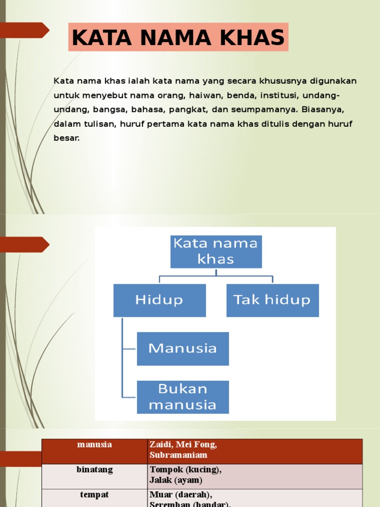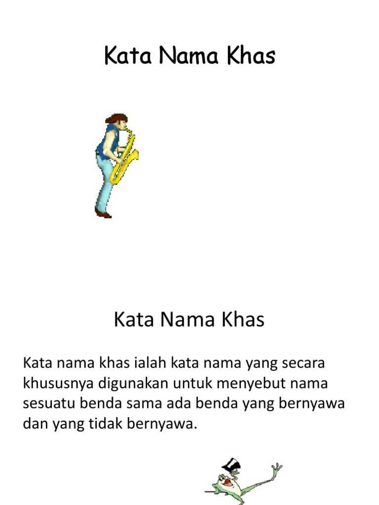Kata nama am ditulis degan huruf kecil. Perkataan nama khas digunakan bagi. Kata nama am ialah perkataan yang merujuk benda atau perkara yang umum sifatnya. Savesave kata nama khas benda hidup manusia for later. Start studying kata nama khas. Kata benda khusus biasanya berkaitan dengan sebutan secara spesifik terhadap seseorang, nama tempat atau benda tertentu. Download as docx, pdf, txt or read online from scribd. Huru pertama kata nama khas wajib ditulis dengan huruf besar. Learn vocabulary, terms and more with flashcards, games and other study tools. Kata nama khas hidup manusia dengan nama panggilan atau gelaran. Datuk farhan merupakan pengerusi kelab belia taman bahagia. Selalunya perkataan demikian menamakan orang, haiwan, tempat, benda, atau konsep. Dalam tulisan, huruf pertama bagi kata nama khas ditulis dengan huruf besar.